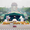 Preparations underway for the International Yoga Day at Rajpath in New Delhi. (PTI)