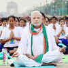 Minister Narendra Modi (front) performs yoga along with thousands of others at