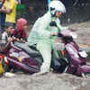 Children help a scooterist to cross a waterlogged road after heavy rain in Kolkata. (PTI)