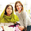 Hollywood actor and singer Mandy Moore poses with a woman in Lucknow on her maiden trip to the country. She is the global goodwill ambassador of a non-profit organization working to increase the availability of health and population control products and services. /news/events/picture-package-of-the-day/sania-mirza-and-her-partner-martina-hingis-celebrate/eventshow/48901144.cms04