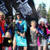 Competitors celebrate their final placings with Vanessa van Uden, Mayor of Queenstown, during the Downtown Day Drag race at the Queenstown Winter Festival on June 29, 2016 in Queenstown, New Zealand. (Getty Images)