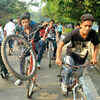 Some cycling action during the Raahgiri celebrations. in Bhopal. (BCCL)