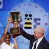 Speller Kavya Shivashankar from Olathe, Kansas is presented the winner's trophy by President and CEO of the E.W. Scripps Company Richard Boehne after she won the 2009 National Spelling Bee in Washington on May 28, 2009. (Reuters/Jim Young)
