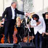 Music composer Abhay Rustum Sopori takes a bow as Indian-born orchestra conductor Zubin Mehta acknowledges him during the Ehsaas-e-Kashmir concert at Shalimar Garden on the outskirts of Srinagar, India, Saturday, Sept - Photogallery