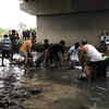 Here are the photos from the site, where UP Roadways bus fell into a drain...