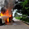 Vehicles burn in violence following Dera Sacha Sauda chief Gurmeet Ram Rahim’s conviction in Panchkula. (PTI)