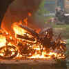 A bike burn in violence following Dera Sacha Sauda chief Gurmeet Ram Rahim’s conviction in Panchkula. (PTI)