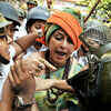 BJP workers clash with police during a protest against the Trinamool Congress (TMC) in Kolkata. (PTI)