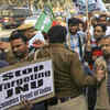 The two students, accompanied by their lawyer, appeared at the administration block and were taken out of JNU shortly before they were arrested. (Source: Twitter) /news/india/jnu-row-kanhaiya-kumar-gets-bail/jnu-row-students-surrender-to-police/eventshow/51117655.cms04