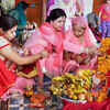 Women performing rituals on the occasion of Karva Chauth in Bikaner. (PTI)