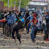 Students throw stone at security forces during a protest against the encounter killings in Kashmir, in Srinagar. (PTI) /news/india/massive-protests-erupt-in-kashmir/protest/eventshow/63643320.cms02