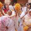 Widows playing Holi with flowers at Gopinath temple in Vrindavan. (PTI)