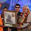 Shravanabelagola mutt seer Charukeerthi Bhattaraka Swami presents Prime Minister Narendra Modi his portrait during his visit to Shravanabelagola in Hassan. (BCCL)See more of :
