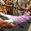 Police detain a member of Swadeshi Jagaran Manch during their protest near the Chinese Embassy in New Delhi on June 28, 2016 after China did not support India's bid for NSG membership.