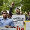 Social activists and students shout slogans during a protest rally against the death of at least 64 children due to alleged oxygen shortage at the Baba Raghav Das Medical College Hospital of Gorakhpur, in New Delhi. (PTI)
