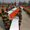 An Indian Border Security Force (BSF) officer lays flower petals over the coffin of his colleague, Sudip Sarkar, who was martyred in a gun battle between security forces and terrorists, during the wreath-laying ceremony in Srinagar.