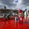 <p>Protesters in London poured red colour into two Trafalgar Square’s fountains, protesting against the farming of animals and to prevent future pandemics by ending factory farming - Photogallery