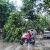 A motorist tries to get round a fallen tree blocking a road in Shantou, in southern China's Guangdong province on September 22, 2013, as Typhoon Usagi approaches.