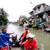 Volunteer rescuers look for residents to be ferried to an evacuation center amidst flooding at suburban Quezon city, northeast of Manila Monday, Sept. 23, 2013 following heavy rains brought about by Typhoon Usagi.