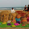 Famous sand artist Manas Sahoo creates a sand sculpture to mark Mother's Day in Puri. (PTI)