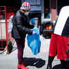 A woman wearing a protective face mask holds out her shopping bag, at a free food distribution for people in need, outside the West Harlem Group Assistance in Manhattan during the outbreak of the coronavirus disease (COVID-19) in New York city, New York. (Reuters) /news/world/americans-feel-economic-crush-of-coronavirus/eventshow/75804142.cms03