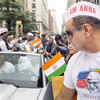 Anna Hazare waves Indian national flag as he takes part at India day parade in New York on Sunday - Photogallery