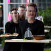 Servers in protective gear carry food at a restaurant which is testing servers providing drinks and food to models pretending to be clients in a safe "quarantine greenhouses" in which guests can dine in Amsterdam, Netherlands. (Reuters) /news/world/coronavirus-these-pictures-show-how-our-world-re-engineered-for-social-distancing/eventshow/75669284.cms02