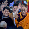 Arunachal Pradesh Chief Minister Dorji Khandu (left) receives His Holiness the 14th Dalai Lama who arrived in Asia’s second largest monastery for a five-day visit, amidst chanting of Buddhist shalokas and performance of rituals by monks in Tawang  (PTI)