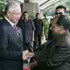 Malaysian Defence Minister Najib Razak (l) greets his Indian counterpart A. K. Antony at the Ministry of Defence in Kuala Lumpur January 07, 2008. (Reuters/Zainal Abd Halim) ()See more of :