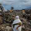 A woman who lost her nephew in last week's earthquake stands in the Balaroa neighbourhood in Palu, Sulawesi Island, Indonesia.