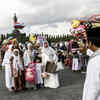 A family pose for a portrait after a mass to celebrate Eid-ul Fitr, in Bali. (Getty Images)See more of :