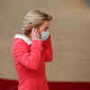 European Commission President Ursula von der Leyen adjusts her protective face mask during arrivals for the first face-to-face EU summit since the coronavirus disease (COVID-19) outbreak, in Brussels, Belgium - Photogallery