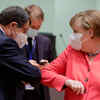 Cypriot President Nicos Anastasiades and Germany's Chancellor Angela Merkel bump elbows at the start of the first face-to-face EU summit since the coronavirus disease (COVID-19) outbreak, in Brussels, Belgium. (Reuters) /news/world/eu-leaders-hold-summit-over-covid-19/eventshow/77065432.cms02