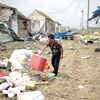 A man stands in front of the rubble of his destroyed house after a tornado hit the region in Funing, in Yancheng, in China's Jiangsu province on June 24, 2016.