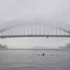 The arch of the Sydney Harbour Bridge shrouded in fog as a morning ferry passes on July 17, 2016 in Sydney, Australia. Early morning fog covered the Sydney Harbour Bridge and Sydney CBD today which reduced visibility on roads. (Getty Images) /news/world/fog-blankets-sydney/eventshow/53248722.cms08