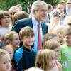 US President George W. Bush (R) gives a little girl a hug on her birthday as he stopped to greet people on the street after attending a fundraiser in Little Rock, Arkansas on July 1, 2008. (Reuters/Jonathan Ernst)