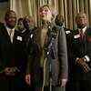 Hillary Rodham Clinton, is flanked by members of the Missouri clergy as she talks to the media during a campaign stop in Kansas City, Mo. (AP Photo/Charlie Riedel) () Hillary Rodham Clinton, is flanked by members of the Missouri clergy as she talks to the media during a campaign stop in Kansas City, Mo. (AP Photo/Charlie Riedel) /news/world/hillary-clinton/hillary-clinton-talks-to-media/eventshow/2434129.cms02
