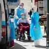 Ambulance workers help an elder woman get into the ambulance, amid the coronavirus disease (COVID-19) outbreak, in Leganes, near Madrid, Spain. (Reuters)