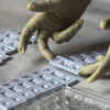 A medical healthcare worker sorting the test samples collected, at a school which was turned into a centre to conduct tests for coronavirus.