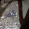 Police in a boat drag the Harlem River for bodies at the site of a Metro North train derailment in the Bronx borough of New York.