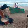 Sand artist Sudarsan Pattnaik giving finshing touch to a sand sculpture of Pop singer Michael Jackson with a 15 ft long Gittar on the eve of his 51st birth anniversery at Puri beach. (PTI)