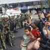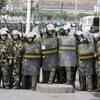 Chinese paramilitary police form a line against Uighur protesters in Urumqi, China, Tuesday, July 7, 2009.