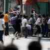 A mob of Han Chinese throw rocks at a building where some Uighurs are believed to be hiding in Urumqi, China, Tuesday, July 7, 2009.