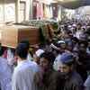 People carry a body of Thursday's bombing victim for burial in Peshawar, Pakistan on May 29, 2009. (AP Photo/Mohammad Sajjad)