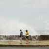 Tourists pass by waves splashing at the seafront in Havana after Hurricane Michael passed in western Cuba.