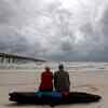 A local couple, who asked not to be named, watch waves come ashore in advance of Hurricane Michael in Pensacola, Florida, U.S.