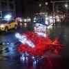 A plane made of Christmas lights called "Magic Delivery" sits on the sidewalk along Fifth Avenue in the Manhattan borough of New York City, U.S.
