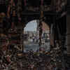 Georg Salzner, president of Castello di Amorosa winery, buries his face in his hand while speaking to Madeleine Reid, the director of hospitality, as they are framed by a warehouse containing thousands of wine bottles destroyed by the Glass Fire in Calistoga, California, U.S.