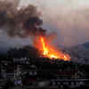 Flames rise as a wildfire burns near the village of Kechries, Greece.