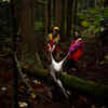Hunters Chiaki Kodama (R) and Aoi Fukuno drag a deer that Kodama shot through a forest outside Oi, Fukui Prefecture, Japan, November 17, 2016.